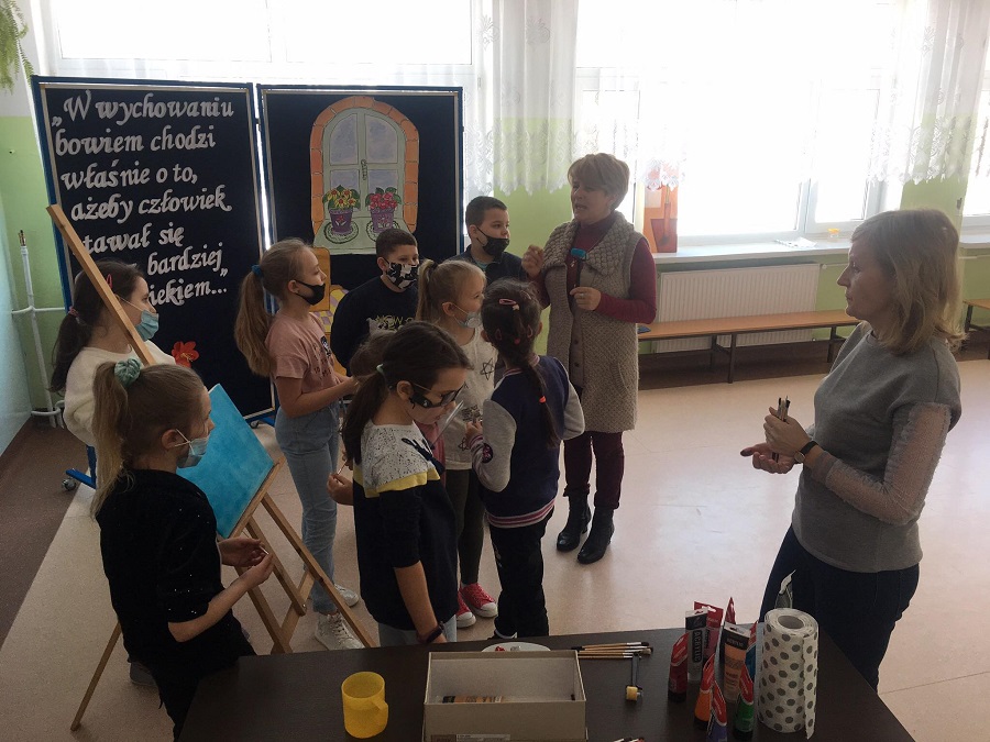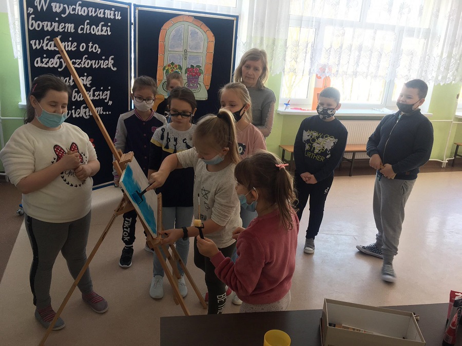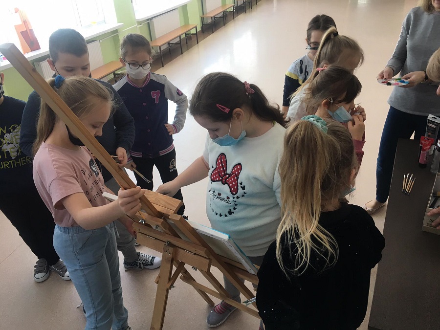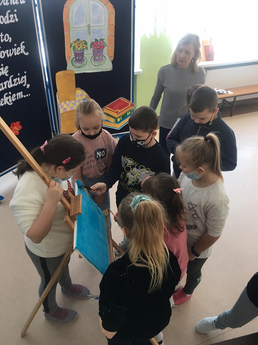 Dnia 18 lutego uczniowie klas I-III naszej szkoły brali udział w lekcji malowania na płótnie. Uczniowie pod kierunkiem Pań Olgi Zalewskiej i Ewy Sokołowskiej stworzyli piękną, wspólną pracę. Poniżej zdjęcia ze spotkania.